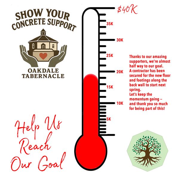 The Save the Tabernacle group wishes to thank the hundreds of people who have already provided financial support for the Save and Revive the Oakdale Tabernacle effort. Several large contributions from end of year IRA Required Minimum Distributions (RMD’s), memorial gifts, and organizational donations have also bolstered our fund raising dramatically.